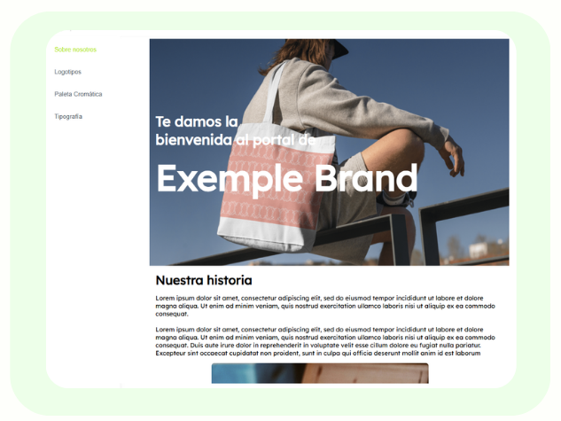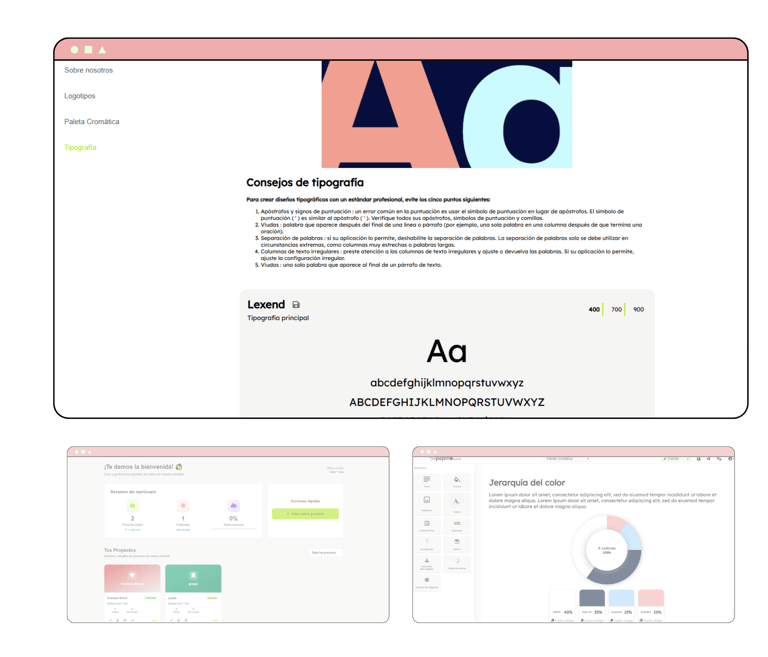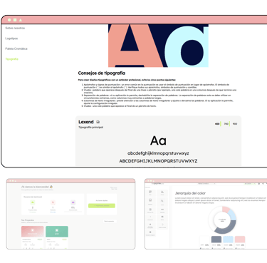 Sube archivos, paletas de colores, tipografías y guías vivas en segundos. Ahorra horas de maquetación y entrega algo que tu cliente realmente use a diario.